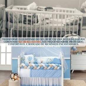 Kit Berço Safari Menino 11 Peças Estampado de bichinhos + Naninha COR: AZUL Transforme o quartinho do seu bebê em um verdadeiro safári cheio de amor