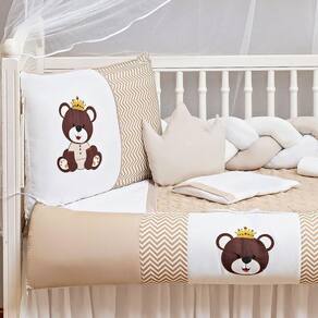 Kit Berço Unisex Urso Rei 14 Peças Bege Com Capa Impermeável Total 14 peças