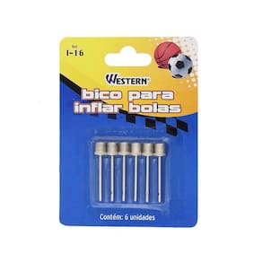 Bico para Inflar Bolas com 6 Unidades Ref. I-16 - Western Bico ótimo para encaixar e encher bolas Tamanho Aproximado: 4 Cm Peso: 20 Gramas Cor:prata Quantidade: 6 Unidades Composição: Aço Carbono Marca: Western Garantia Do Fabricante: Defeito De Fabricação Ean: 7897186077802