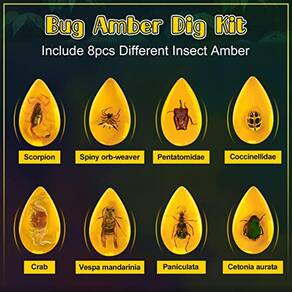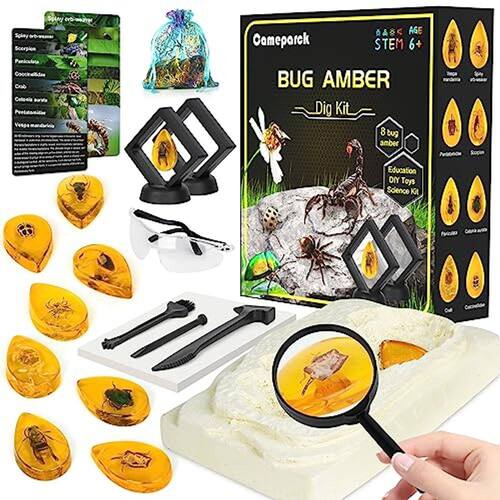 Kit Bigger Amber Dig — 8 resinas de insetos artificiais diferentes, escave espécimes exclusivos de insetos, brinquedos para insetos, kits de ciências educacionais, brinquedos para crianças, projetos STEM, presente para meninas e meninos de 6 a 8 a 12 a 14 anos