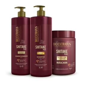 A Ísis Cosméticos é uma empresa que atua no ramo de produtos para beleza, cosméticos e cuidados pessoais. Nós da loja Ísis Cosméticos trabalhamos com as principais marcas do mercado, levando até você os melhores produtos e lhes oferecendo uma ótima experiência. Somos uma empresa que preza pela confiança e satisfação de nossos clientes. ========================================================================================= Linha Shitake - Reconstrução Nutritiva Desenvolvida para recuperar os cabelos desvitalizados. Combina o poder nutritivo do Elixir de Shitake à ação reconstrutora das proteínas dos cereais. Indicação: Cabelo desvitalizado. Função: Devolver a resistência, a elasticidade e a saúde dos fios. Resultados e Benefícios: Cabelos com brilho intenso, leves e com a estrutura capilar totalmente reparada. Ativos: - Shitake lentinus edodes extract é um cogumelo comestível nativo do leste da ásia e extremamente nutritivo. Em sua composição encontramos proteínas, vitaminas e, b, c e d , aminoácidos essenciais e os sais minerais de cálcio, fósforo, ferro e potássio. - Proteínas de cereais obtidas através de biotecnologia, as proteínas de cereais possuem alta afinidade com as estruturas proteicas dos fios de cabelo. Essa grande afinidade proporciona a reposição da estrutura interna e externa da fibra capilar que sofreu danos. Shampoo Shitake Plus Fórmula balanceada, perfeita para o uso diário, que promove uma limpeza suave, dá brilho e devolve a vitalidade aos cabelos. Combina o poder nutritivo do elixir de shitake com a ação reconstrutora das proteínas de cereais, oferecendo os nutrientes essenciais para a saúde da fibra capilar. Ph 6,0. Sem adição de sal. Condicionador Shitake Plus Fórmula inovadora para tratamento diário, que promove um desembaraço perfeito, devolve o brilho e a vitalidade aos cabelos. Combina o poder nutritivo do elixir de shitake com a ação reconstrutora das proteínas de cereais, oferecendo os nutrientes essenciais para a saúde da fibra capilar. Ph 3,5. Máscara Shitake Plus Tratamento instantâneo, que hidrata profundamente os fios, oferece os nutrientes essenciais para restauração da fibra capilar, recupera a vitalidade e dá brilho intenso aos cabelos. Combina o poder nutritivo do elixir de shitake com a ação reconstrutora das proteínas de cereais. Ph 4,5. ========================================================================================= Anúncio composto por: 01 unid. Shampoo Bio Extratus Shitake Plus 1L 01 unid. Condicionador Bio Extratus Shitake Plus 1L 01 unid. Máscara Bio Extratus Shitake Plus 1Kg SKU Interno: IS00346 Agradecemos a preferência.