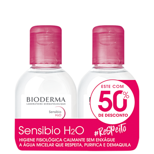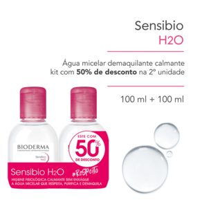 Kit com 2 frascos de água micelar calmante para todos os tipos de peles, até as mais sensíveis. Bioderma Sensibio H2O remove maquiagem e impurezas enquanto acalma e preserva a película de proteção natural cutânea, além de ajudar a reconstruí-la.