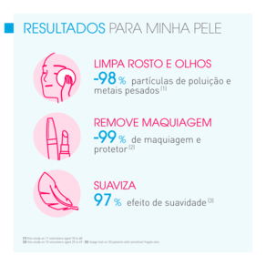 Fórmula hipoalergênica e livre de óleo, álcool, perfume, sabão e parabenos. Indicada para todos os tipos de pele, especialmente as sensíveis. Testada sob controle dermatológico e oftalmológico.