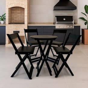 Kit Bistrô Eucalipto Dobrável Com 4 Banquetas De Madeira Preto