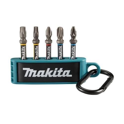 Kit de bits impact premier com 5 peças da makita, vem em um suporte de plástico compacto com chaveiro para conveniência do usuário.Características do produto:- marca: makita;- bits de torção dupla;- codificado por cores para fácil identificação de bits;- tamanho de bolso;- liga de aço especial, área mais delgada anterior a ponta, chamada de zona de torção, absorve o torque e reduz o esforço da ponta do bit proporcionando excelente desempenho e alta durabilidade.Conteúdo da embalagem:- bits de 50mm: ph2, pz2, pz3, t25, t30.Imagens meramente ilustrativas, os objetos que ambientam as imagens não acompanham o produto. Marca: Não Informado