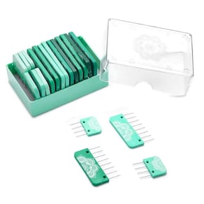 Kit Bloqueadores para Tricô e Crochê KnitPro Mindful C/20 Kit Bloqueadores para Tricô e Crochê KnitPro Mindful, feitos à mão com materiais de alta qualidade e design elegante. Dois tamanhos para gerenciar formas diferentes ao bloquear. Úteis para projetos pequenos ou grandes, essas ferramentas de bloqueio são essenciais para tricoteiras e crocheteiras que desejam terminar bem o seu trabalho. Ideal para trabalhar no bloqueio de bordas retas como blusas, xales e lenços. Contém 20 unidades:- 12 Bloqueadores de malha com 8 pinos- 08 Bloqueadores de malha com 4 pinos Marca: KnitProModelo: Bloqueadores para Tricô e CrochêReferência: 36650Plástico resistente com pinos de aço Marca: Knitpro
