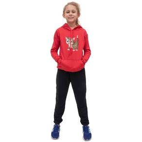 Kit Blusa Moletom Menina Infantil Canguru Com Calça de Frio Lisa Para Escola Passeio Moda Inverno - Vermelho - 16
