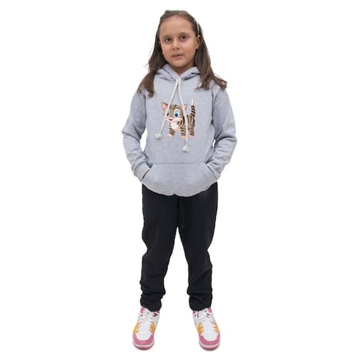 Kit Blusa Moletom Menina Infantil Canguru Com Calça de Frio Lisa Para Escola Passeio Moda Inverno - Cinza - 12