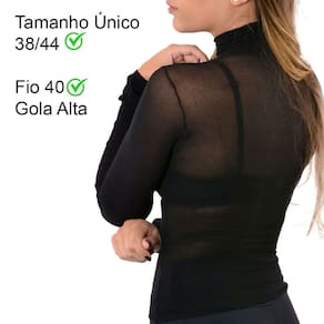 Kit Blusa Segunda Pele Gola Alta Manga Longa Fio 40 Tamanho 38/44 + 1 Lenço Cetim Estampa diversa 90x90. Blusa confeccionada com malha finíssima para ser usada em baixo da roupa ou com sobreposições, permitindo versatilidade no visual. Modelagem em manga longa, possui transparência, elasticidade e caimento justo. Qualidade Selene. Gola alta Fio 40. Cor disponível: Preto. Composição: 98% Poliamida, 2% Elastano. Produto delicado. Acompanha também 1 lenço em cetim modelo quadrado grande: 90 x 90 cm - 100% poliéster. Perfeito para uso casual ao ar livre e demais ocasiões. Proporciona diversas amarrações, podendo ser utilizado como top, cropped, faixa, lenço, bandana, no pescoço, como cachecol, echarpe, na lateral da bolsa, como cinto, etc. Possui toque de seda suave, cores lindas e vibrantes. Diversas maneiras de combinar, use sua criatividade. Modelos e e diversas sem possibilidade de escolha. Todos os modelos são lindos e modernos. Dica: Para que o lenço fique maior e permita muitas combinações, dobre-o na diagonal e inicie as amarrações desejadas. Para maior durabilidade e conservação, lavar à mão e secar a sombra. Kit completo para você se manter aquecida e elegante em qualquer ocasião. Contém: 1 Blusa Gola Alta Manga Longa Fio 40 Preta + 1 Lenço Cetim 90x90 diverso = 2 Produtos. Fotos ilustrativas e reais do produto.