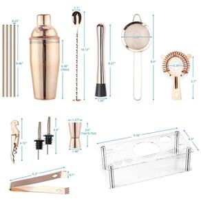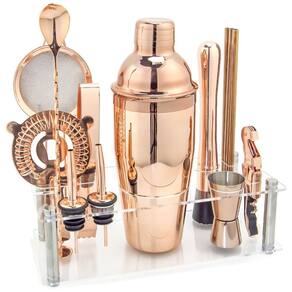 KIT MIXOLOGY BARTENDER Com suporte arcílico, coqueteleira profissional, 2x licores, jigger duplo, colher de mistura, coador cônico de malha, maçar, coador hawthorne, palha de cortiça, pinça de gelo, 4 canudos. FÁCIL DE EXIBIR E ZENAR Kit de bar com suporte de acrílico, mantenha seu barware protegido contra arranhões e organizado. Quando houver convidados, você poderá exibir com orgulho seu kit de coquetel e misturador de bebidas. À PROVA DE FERRUGEM O conjunto de kits VG Bartending foi projetado para ser prático e elegante, mas durável o suficiente para uso diário. Portanto, ao contrário de itens essenciais de bar semelhantes que enferrujam facilmente, este conjunto de kit de coquetel é feito de aço inoxidável de alta qualidade SS304. ATENDER A TODAS AS SUAS NECESSIDADES Seja você um entusiasta de misturadores de bebidas em casa ou até mesmo um bn profissional, este kit de coquetéis será perfeito para você fazer bebidas saborosas