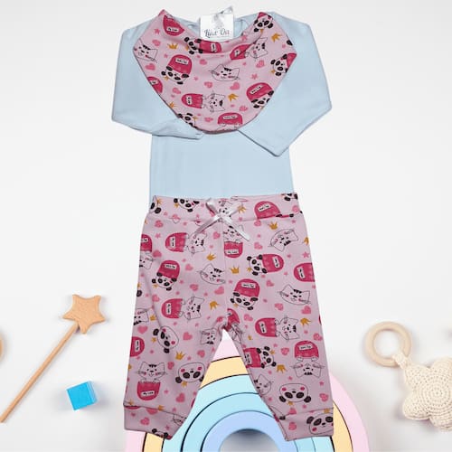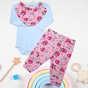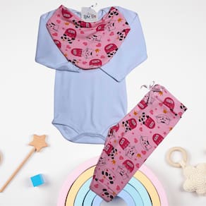O kit Body Like On é um conjunto de roupas infantis composto por um body, uma calça e uma bandana babador. A composição do tecido é especialmente pensada para garantir conforto e durabilidade, sendo 70% algodão e 30% poliéster.