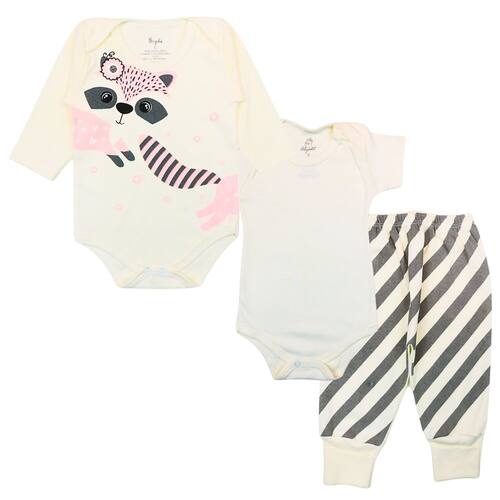 Apresentamos o Kit Body Bebê Longo e Curto Algodão Bege Estampado Menina