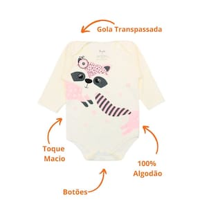 • 01 Body Manga Longa com botões na base 01 Mijão Pé Reversível com elástico na cintura 01 Body Manga curta com botões na base