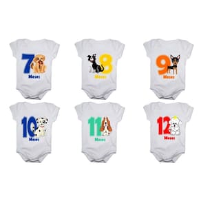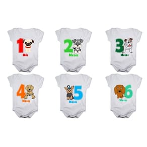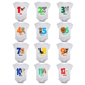 Kit body bebê mesversario manga curta estampa cachorrinhos 12 bodies 1 a 12 meses - Único - Branco