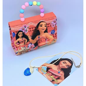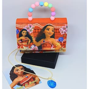 Kit Bolsa Infantil Princesa Disney Moana Mini Bag Alça Corrente Transversal + Colar Transforme os passeios da sua pequena em momentos inesquecíveis com o Kit Bolsa Infantil Princesa Disney Moana! Compacta e prática, esta bolsa é a escolha ideal para a escola, festas ou atividades ao ar livre. Com um design encantador inspirado no filme Princesa Moana, cada detalhe é pensado para proporcionar diversão e estilo. Características do Produto: