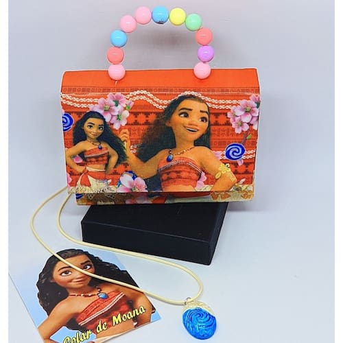 Colar Exclusivo da Moana Junto com a bolsa, você também recebe um colar exclusivo da Moana, que é o complemento perfeito para o look da sua princesa!