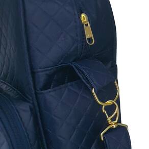 A Bolsa Grande é ideal para carregar todos os itens essenciais do bebê. Com dimensões de 30cm de altura, 38cm de largura e 17,5cm de profundidade, ela oferece amplo espaço interno. Possui dois bolsos laterais sem fecho e um bolso frontal com fechamento em zíper, garantindo fácil acesso e organização. As alças de mão e de ombro proporcionam conforto e versatilidade no transporte.