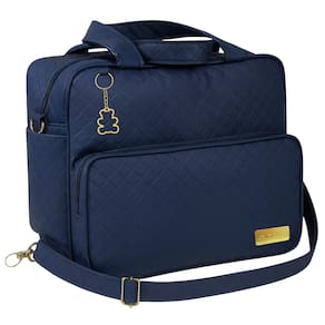 A Bolsa Grande é ideal para carregar todos os itens essenciais do bebê. Com dimensões de 30cm de altura, 38cm de largura e 17,5cm de profundidade, ela oferece amplo espaço interno. Possui dois bolsos laterais sem fecho e um bolso frontal com fechamento em zíper, garantindo fácil acesso e organização. As alças de mão e de ombro proporcionam conforto e versatilidade no transporte.