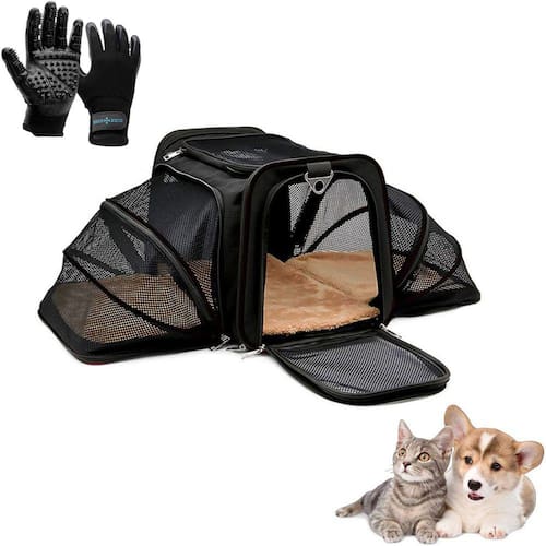 Conteúdo da embalagem: - 1x Bolsa Expansível para Pet - Cães e Gatos - 1x Par de Luvas Magnética - Preta