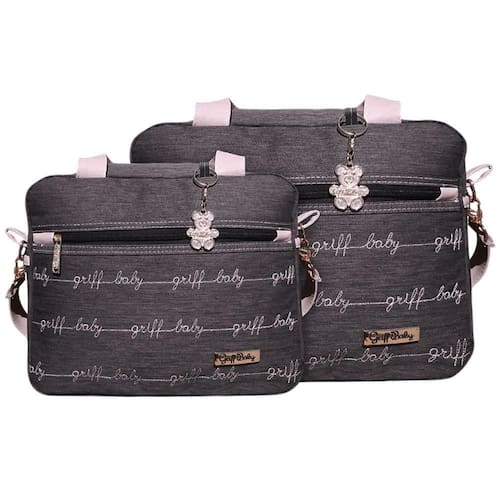 Kit Bolsas Maternidade Baby Chaveiro Urso Premium Cinza E Rosa