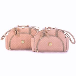 Conjunto kit bolsas maternidade bebe menina menino enxoval miellu - linha pópeti - bolsa m, bolsa p e trocador - 4 peças Cor: rose Kit bolsas maternidade miellu - linha pópeti - 3 peças Kit maternidade desenvolvido pela miellu com a finalidade de proporcionar praticidade, conforto, qualidade, estilo e durabilidade = exterior - fabricada em material sintético antialérgico externamente, material resistente, que não descasca e de fácil limpeza. - alças reforçadas com fita cadarço - alça tira-colo ombro - bolso frontal - bolso lateral dos dois lados da peça para facilitar o dia-a-dia - ampla abertura do compartimento principal proporcionado pela tampa central com dois cursores, o que facilita a organização e manuseios dos itens na bolsa. - ferragens em dourado - laço de cetim na alça. = interior - internamente forrada em bagum e nylon branco, garantindo higiene, facilidade de limpeza e durabilidade, sem agregar peso a bolsa. - porta mamadeira térmico embutido, mais praticidade e proteção para a mamadeira apenas na bolsa m - porta objetos no interior para facilitar a organização - bolso interno na tampa da abertura principal para cartões, chaves ou documentos Dimensões - 1 bolsa média - 36cm largura x 25cm altura x 17cm profundidade - 1 bolsa pequena 34cm largura x 23cm altura x 16cm profundidade - 1 trocador 68x39 = a bolsa média é equipada com porta mamadeira térmico embutido, a bolsa pequena não possui = Acompanha 2 laços de cetim Produto nacional, feito por brasileiros. Marca: Miellu Bolsas