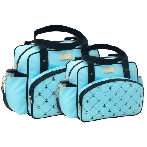 - A Bolsa Grande tem 02 bolsos laterais sem fechamento, 01 bolso frontal com fechamento em zíper e fechamento principal em zíper.