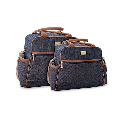 Kit Bolsas Maternidade Linha City Cor Jeans Linha City Cor jeans Tecido jeans Detalhes na cor caramelo 2 peças Em corino, forradas em napa Material Impermeável Com alças de ombro e de mão Alças reguláveis Bolso interno Acompanha trocador branco tamanho padrão Medidas: 40 X 30 X 16 26 X 22 X 14 Kit bolsas para levar roupas de bebê com ótimo espaço que facilita o passeio com seu bebê. Produto nacional com 30 dias de garantia contra defeito de fabricação