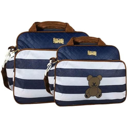 - A Bolsa Grande tem 02 bolsos laterais sem fecho, 01 bolso frontal com fechamento em zíper e fechamento principal em zíper.