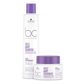 Apresentamos a solução perfeita para você: o Kit Schwarzkopf BC Frizz Away, composto por um Shampoo de 250ml e uma Máscara de 200ml.