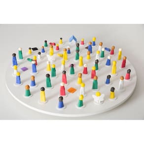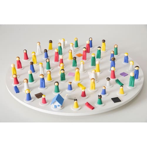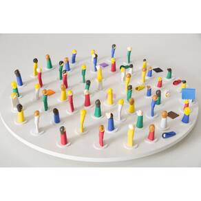 Kit Família Sistêmica - 65 Peças Kit Família Sistêmica desenvolvida em E.V.A. com as mesmas cores das roupas e dos cabelos dos tradicionais bonecos Playmobil, para Constelação Familiar na água e/ou na mesa. São 65 peças feitas à mão: 4 casais de avós + 12 casais de adultos + 6 casais de adolescentes + 4 casais de crianças + 5 bebês + 2 anjos + 1 casa + 5 âncoras. Produto exclusivo e impermeável. O campo mórfico não acompanha o produto. *Fotos e vídeo meramente ilustrativos.