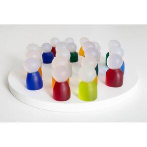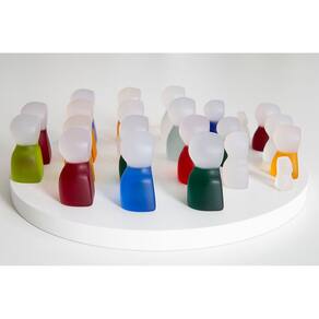Kit Família Sistêmica Artesanal Família Sistêmica Artesanal, desenvolvida em resina por Patrícia Giambastiani com as mesmas cores das roupas dos tradicionais bonecos Playmobil, para Constelação Familiar. São 22 bonecos feitos à mão: 7 homens + 7 mulheres + 3 meninos + 3 meninas + 2 bebês. Produto exclusivo. O campo mórfico não acompanha o produto. *Fotos meramente ilustrativas.\n