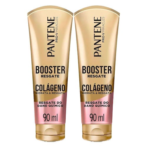 O Booster Resgate Pantene Colágeno Hidrata e Resgata Dano Químico 90ml é especialmente indicado para cabelos danificados, tingidos e quimicamente tratados. Possui fórmula enriquecida com colágeno vegetal, biotina e pro-vitamina B5, colágeno 100% natural. Juntos esses ativos proporcionam nutrição capilar da raiz até as pontas e protege o cabelo dos danos associados às constantes transformações. Aumenta a resistência à quebra, sendo ideal para cabelos tingidos, descoloridos ou com luzes. Além disso, resgata profundamente até mesmo os fios mais danificados.Benefícios:- Nutrição intensa;- Evita a quebra;- Hidratação profunda.Modo de usar: Com os cabelos limpos e úmidos, aplique a Máscara Capilar Pantene Booster Resgate Dos Danos no comprimento e pontas mecha a mecha, massageando suavemente em movimentos de cima para baixo. Deixe agir por alguns minutos e enxágue. Para melhores resultados, use a linha completa.Sobre a marca: O nome de Pantene se refere a origem do produto, o Panthenol, nome científico da Vitamina B5. Na década de 40, a companhia suíça Hoffman-La Roche descobriu que o Panthenol era extremamente hidratante e melhorava a saúde do cabelo quando combinado com outros ingredientes. Pantene confere cabelos bem cuidados, macios, cheios de brilhos com uma aparência solta e saudável, é o cartão de visita de qualquer bela mulher em quase todas as partes do mundo. E não existe no mundo uma marca que entenda essa relação das mulheres com os cabelos como Pantene, uma especialista em formular xampus e condicionadores para diferentes tipos de cabelos.