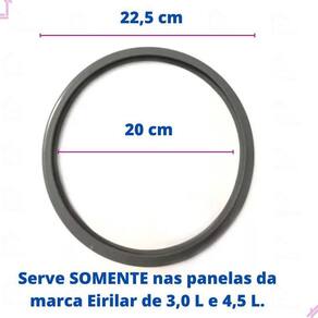 Nosso empenho é procurar o que há de mais atual e funcional no mundo culinário e para organização da sua casa, priorizando sempre a qualidade e a versatilidade dos produtos. Kit borracha panelas eirilar 3 e 4,5 litros Este kit contém: 1 borracha de silicone para panelas eirilar 3 e 4,5l de fechamento externo 1 válvula de segurança de borracha 1 peso pino preto e vermelho Borracha para panelas eirilar com fechamento externo de 3 e 4,5 litros. As borrachas de silicone 100% atóxico, não ressecam, são melhores para o desempenho da sua panela, fazendo com que a vedação seja total O anel de vedação deve ser substituído sempre que ficar rígido ou quebradiço. Medidas da borracha: Diâmetro externo: 22,5cm Diâmetro interno: 20cm; Fique atento à algumas dicas de uso: - jamais coloque a panela quente embaixo da água fria, esse choque térmico causa deformidades no alumínio; - mantenha sempre o pino central limpo, faça a limpeza com algo de metal, não use palito de dente, ele pode quebrar e você precisará trocar a peça; - prefira cozinhar em fogo baixo, o tempo é o mesmo e evita que a água seque mais rápido. Manutenção em dia = panela segura Gostou Esse produto pode ser seu aguardamos sua compra Marca: Não Informado Ean: 7898749650098