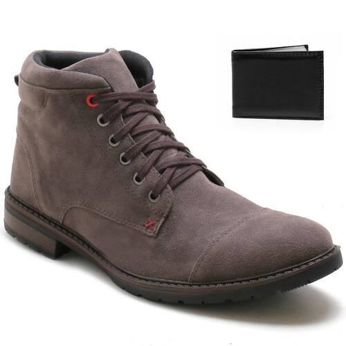 Kit Bota Coturno Masculino Camurça + Carteira Dia a Dia Leve - 43 - Cinza