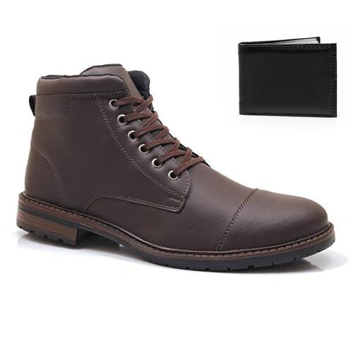 Kit Bota Coturno Masculino + Carteira Dia a Dia Casual Macio - 41 - Marrom Cacau