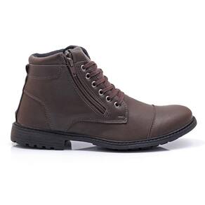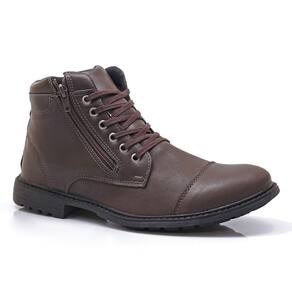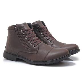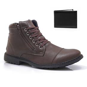 Kit Bota Coturno Masculino Zíper + Carteira Casual Dia a Dia - 37 - Marrom Cacau