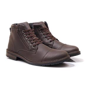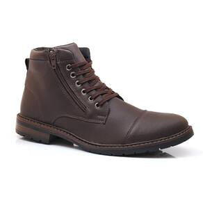 Kit Bota Coturno Masculino Zíper + Carteira Leve Dia a Dia - 41 - Marrom Cacau
