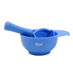 Kit bowl e amassador de papinhas azul zoop baby - zoop toys O kit bowl com amassador de papinha zoop baby é ideal para o preparo de refeições naturais de maneira rápida e prática, preservando o frescor e sabor das frutinhas e legumes. O amassador com furinhos somado às texturas do bowl, permitem o controle de textura da papinha. Serve tanto para amassar papinhas quentes salgadas, como papinhas de frutas e mingaus. Pode ir ao micro-ondas e lava-louças, e fervido para esterilizar.
