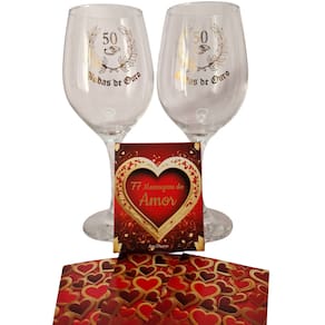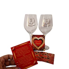 Kit 2 Taças Bodas de Ouro 50 Anos Casal Cristal Personalizada Vinho 490ml - Nadir Figueiredo - Barone