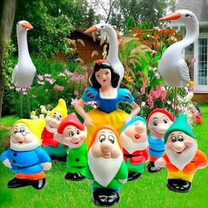 Kit branca de neve e o 7 anões com trio de garças em cerâmica – enfeite de jardim Kit branca de neve e os 7 anões e trio de garças (grandes) de jardim - decoração de festas
