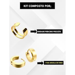 Kit brinco argola furo + piercing pressão orelha hélix clip encaixe dourado aço inox Kit brinco argola furo + piercing pressão orelha hélix clip encaixe dourado aço inox Kit argola de furo + piercing pressão é uma ótima opção para presentear um amigo ou namorado. Modelo em aço inox, não causa alergia e não enferruja, podendo usar diariamente. Esse modelo pode ser em diversas partes do corpo, use e abuse dessa versatilidade. excelente qualidade ================================================================================ Fotos reais do produto na galeria Detalhes técnicos: Marca: visujóias Modelo: piercing Incluso: 1 - par brinco argola de furo + 1 unidade piercing pressão Material: aço inox : de 6 meses. Todas as peças possuem tratamento antialérgico. ========================================================= Marca: Não Informado