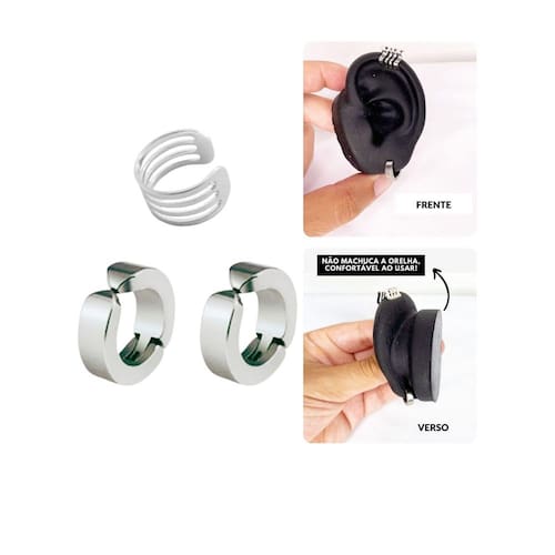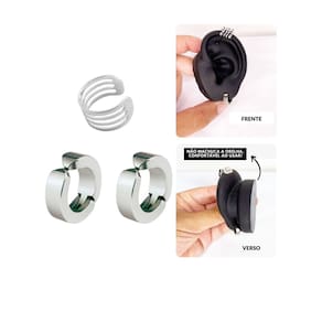 Kit brinco argola pressão prata cartilagem encaixe aço inox antialérgico - 3 peças Kit brinco argola pressão prata cartilagem encaixe aço inox antialérgico - 3 peças Kit brinco na cor aço inox prata é uma ótima opção para presentear um amigo ou namorado. Esse kit é bem completo, pois contém 1 peça do brinco de cartilagem e 2 peças 1 par do brinco pressão argola. Não precisa ter furo para usar - preço do kit com 3 peças - excelente qualidade ============================================== Fotos reais do produto na galeria Detalhes técnicos: Marca: visujóias Modelo: brinco pressão kit Diâmetro: 8mm Espessura do brinco: 4mm Incluso: 3 peças 2 peças 1 par de argola pressão e 3 peças brinco cartilagem . Material: aço inoxidável. Código do produto sku : 3093-2-3332-2-prata : a tem prazo de 6 meses. Todas as peças possuem tratamento antialérgico. ============================================== P:minha compra é segura R:toda compra que é feita aqui está em ambiente seguro, isso significa que se caso ocorra algum imprevisto faremos o estorno de seu pagamento. R: sim. P: precisa de furo para usar O brinco fica caindo R: não não precisa de furo para usar. Colocando o brinco da maneira correta, não fica caindo, pelo contrario, fica bem fixo. Temos um vídeo na galeria explicando como usar. P: produto é a prova d'água R: sim, pode usar em piscinas e praias que não escurece. P: tem R: sim, todos os nossos produtos tem de 6 meses, contra defeitos de fabricação. Todas as informações de cuidados são enviados junto com o produto. P: posta em quanto tempo P: posso trocar se não servir R: sim, enviamos nosso contato junto com o produto para orientação sobre troca. P: posso devolver se não gostar R: sim, caso não goste do produto é só entrar em contato conosco que iremos orientá-lo como efetuar a devolução. Dúvidas Pergunte à vontade, estamos aqui. ficaremos felizes em responder rapidamente. Aguardamos sua compra e estamos ao seu dispor : Marca: Não Informado Ean: 7732647216195