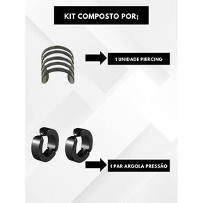 Kit brinco argola pressão pretp cartilagem encaixe aço inox antialérgico - 3 peças Kit brinco argola pressão pretp cartilagem encaixe aço inox antialérgico - 3 peças Kit brinco na cor aço inox preto é uma ótima opção para presentear um amigo ou namorado. Esse kit é bem completo, pois contém 1 peça do brinco de cartilagem e 2 peças 1 par do brinco pressão argola. Não precisa ter furo para usar - preço do kit com 3 peças - excelente qualidade ============================================== Fotos reais do produto na galeria Detalhes técnicos: Marca: visujóias Modelo: brinco pressão kit Diâmetro: 8mm Espessura do brinco: 4mm Incluso: 3 peças 2 peças 1 par de argola pressão e 3 peças brinco cartilagem . Material: aço inoxidável. Código do produto sku : 3093-1-3332-1-preto : a tem prazo de 6 meses. Todas as peças possuem tratamento antialérgico. ============================================== P:minha compra é segura R:toda compra que é feita aqui está em ambiente seguro, isso significa que se caso ocorra algum imprevisto faremos o estorno de seu pagamento. R: sim. P: precisa de furo para usar O brinco fica caindo R: não não precisa de furo para usar. Colocando o brinco da maneira correta, não fica caindo, pelo contrario, fica bem fixo. Temos um vídeo na galeria explicando como usar. P: produto é a prova d'água R: sim, pode usar em piscinas e praias que não escurece. P: tem R: sim, todos os nossos produtos tem de 6 meses, contra defeitos de fabricação. Todas as informações de cuidados são enviados junto com o produto. P: posta em quanto tempo P: posso trocar se não servir R: sim, enviamos nosso contato junto com o produto para orientação sobre troca. P: posso devolver se não gostar R: sim, caso não goste do produto é só entrar em contato conosco que iremos orientá-lo como efetuar a devolução. Dúvidas Pergunte à vontade, estamos aqui. Ficaremos felizes em responder rapidamente. Aguardamos sua compra e estamos ao seu dispor : Marca: Não Informado Ean: 7732647216249
