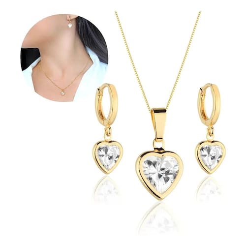 Conjunto Feminino Brinco e Colar Quadrado Turmalina Cravejado Pedra Zircônias Brinco e Colar com banho Paládio tecnologia antialérgico. Banhado em Ouro 18k.