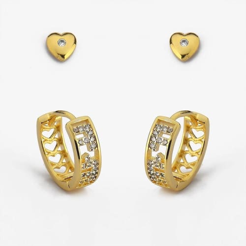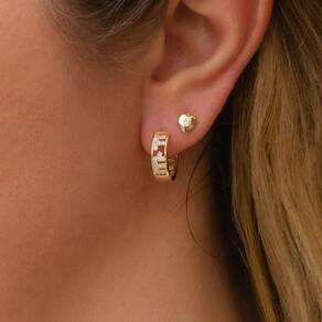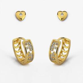 Kit Banhado a Ouro18k Brincos Argola Primeiro e Segundo Furo Brinco de Coração -