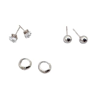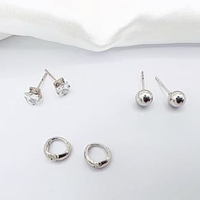 Kit Brincos Argolinha Bolinha Zircônia Folheado Ródio Branco