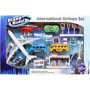 Kit Brinquedo Infantil Com 14 Peças Aeroporto Em Miniatura;