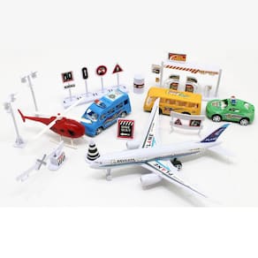 Kit Brinquedo Aeroporto Com 14Pçs helicóptero Avião Ônibus -