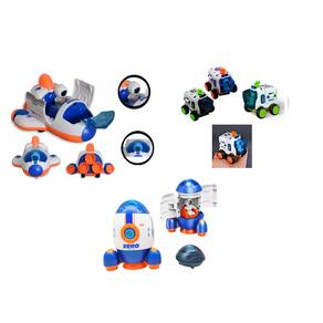 Contém: - 01 foguete cápsula com astronauta - 01 nave foguete com astronauta - 01 carrinho de fricção com astronauta