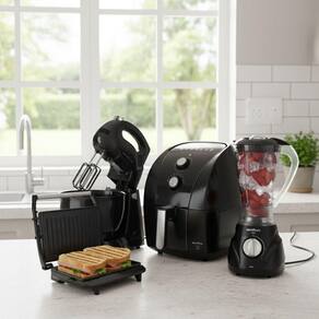 Transforme sua cozinha com o Kit Britania, composto por quatro eletroportateis poderosos e indispensaveis para quem busca praticidade, rapidez e resultados incriveis em qualquer receita. O conjunto inclui a Air Fryer 5,5L Redstone BFR50, a Batedeira Perola 550 Neve 4,3L, o Grill/Sanduicheira BGR27I Press 2 em 1 e o Liquidificador Diamante Black 600W. E o kit perfeito para quem deseja equipar a cozinha com qualidade e alta performance.